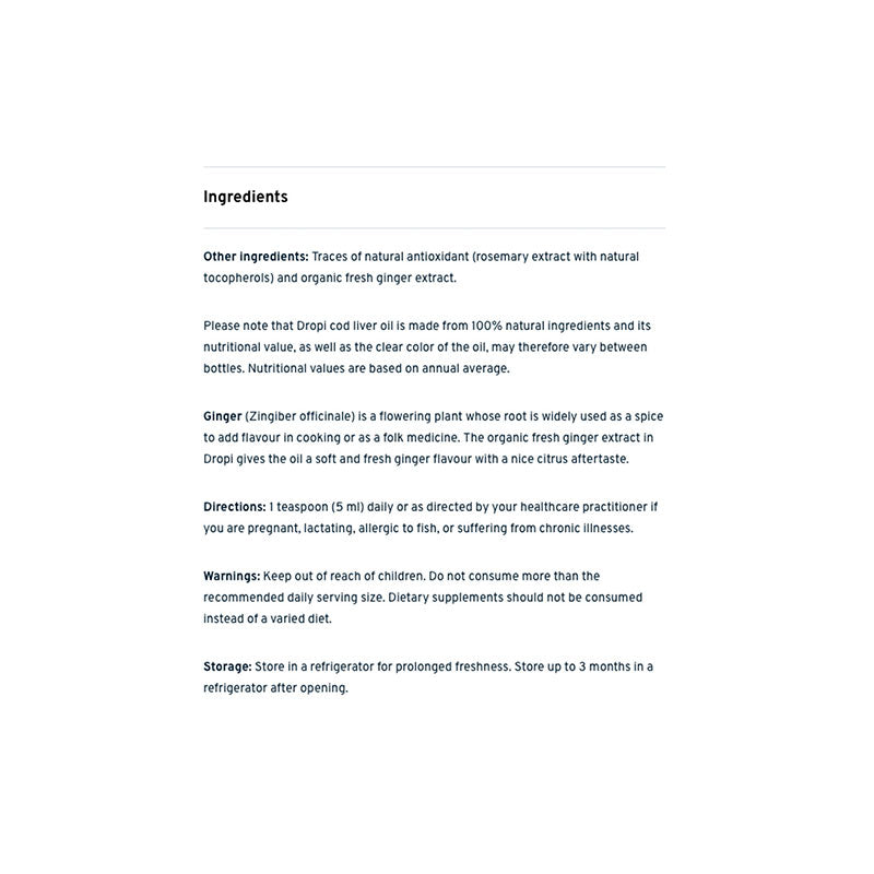 Dropi Cod Liver Oil Liquid offers a time-honored way to nourish your body with naturally occurring vitamins and essential fats—straight from the sea to your spoon.