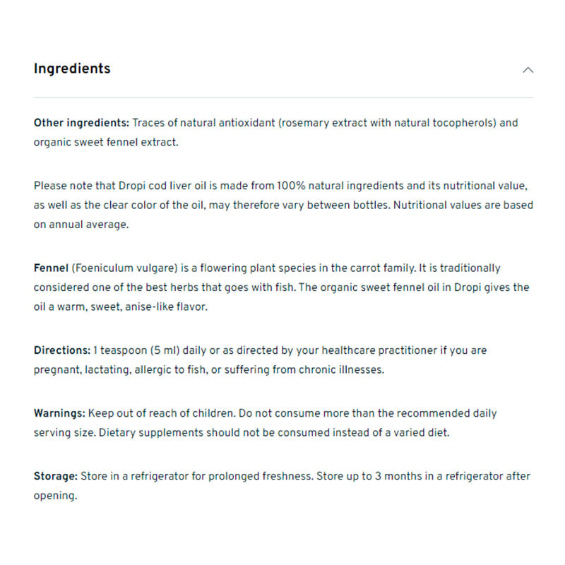 Unlike conventional fish oils that are often overprocessed and stripped of their natural nutrients, Dropi preserves the full spectrum of health-supportive compounds through gentle cold extraction. It’s the cleanest way to restore your body with traditional, nutrient-rich cod liver oil.