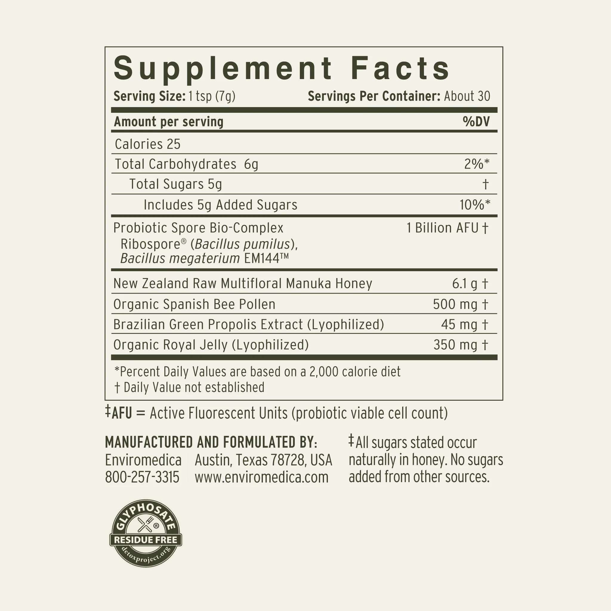 Together, these ingredients form a comprehensive, whole-food gut and immune support formula unlike typical single-ingredient honeys or standard probiotic capsules.