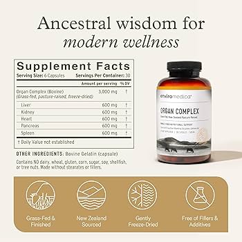 While most modern diets lack the essential nutrients found in organ meats, Enviromedica Pastured Organ Complex offers a convenient and clean way to reintroduce these vital foods without sourcing and preparing them yourself.