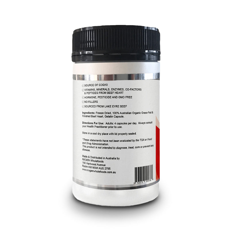 NXGEN Organic Grass-Fed Beef Heart is a nutrient-rich, whole-food supplement crafted from 100% freeze-dried bovine heart, sourced from certified organic, grass-fed Australian cattle. Rich in CoQ10, B vitamins, essential amino acids, and key minerals, beef heart supports cardiovascular health, energy production, and overall vitality—naturally.