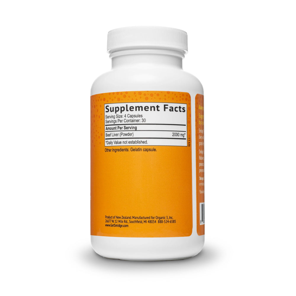 Smidge® Beef Liver is a premium, freeze-dried supplement made from 100% grass-fed, pasture-raised New Zealand cattle. Sourced with integrity and gently processed to preserve maximum nutrition, this ancestral superfood delivers a highly bioavailable source of essential nutrients like vitamin A, B12, iron, choline, and folate.