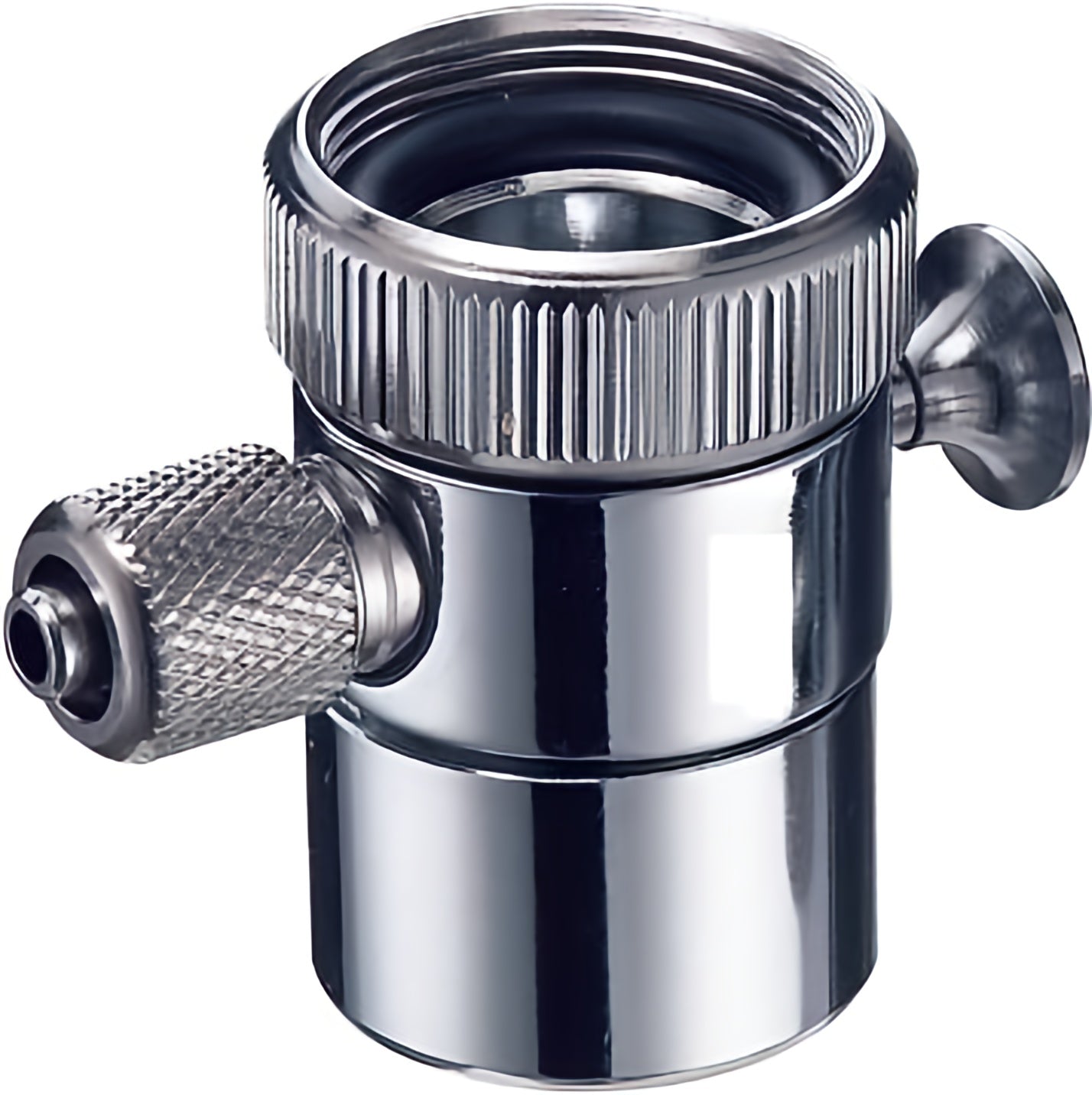 The 2 Rivers Premium Diverter Valve is made of solid brass, plated with chrome, and is compatible with most countertop water filter systems, including the New Wave Enviro 10 Stage Plus Water Filter System (countertop). This diverter valve features a push pin for redirecting water flow and a 1/4" quick connect for tubing pieces.