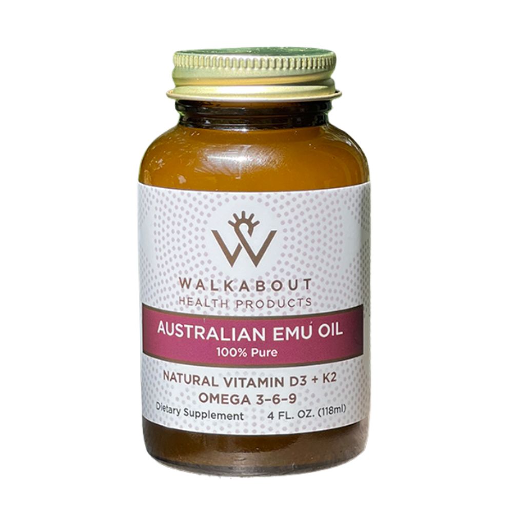 Walkabout Australian Emu Oil is a nutrient-dense natural oil rich in omega fatty acids and vitamin K2 to support your body from the inside out. It helps nourish skin, ease joint discomfort, boost brain function, and promote overall wellness from a single, pure source.